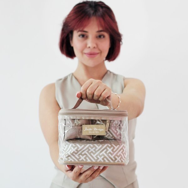 Com design sofisticado e acabamento delicado, o kit é composto por 4 necessaires versáteis, que podem ser usadas juntas ou separadas, conforme a sua necessidade.