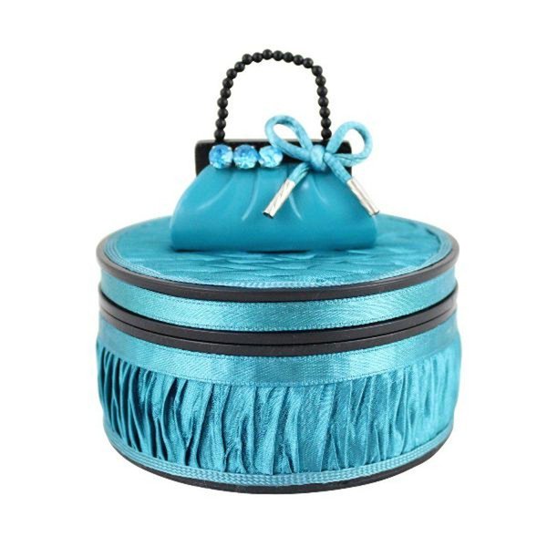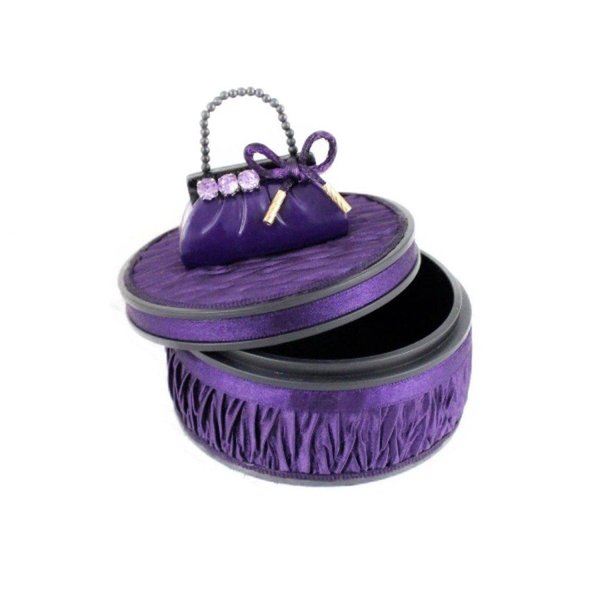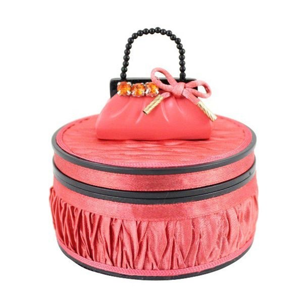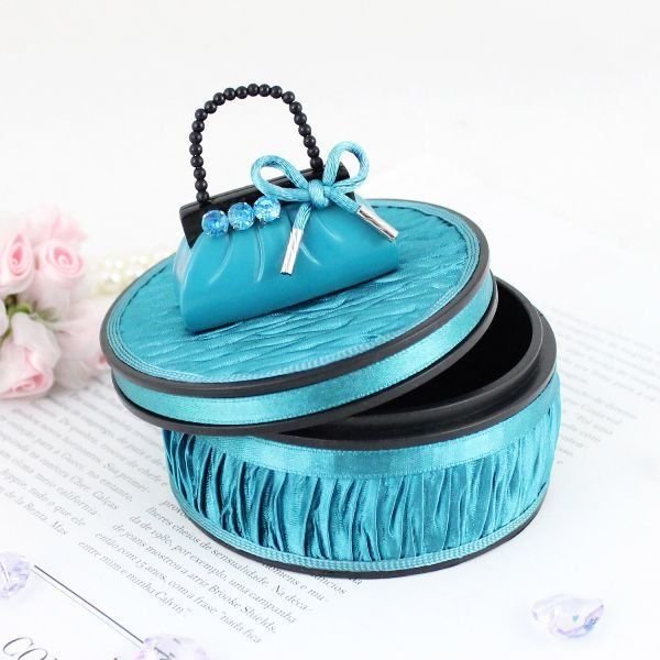 Porta Joias espaço interior para comportar jóias e acessórios, revestido externamente de cetim. Possui detalhes superior (bolsa) com detalhes em strass.